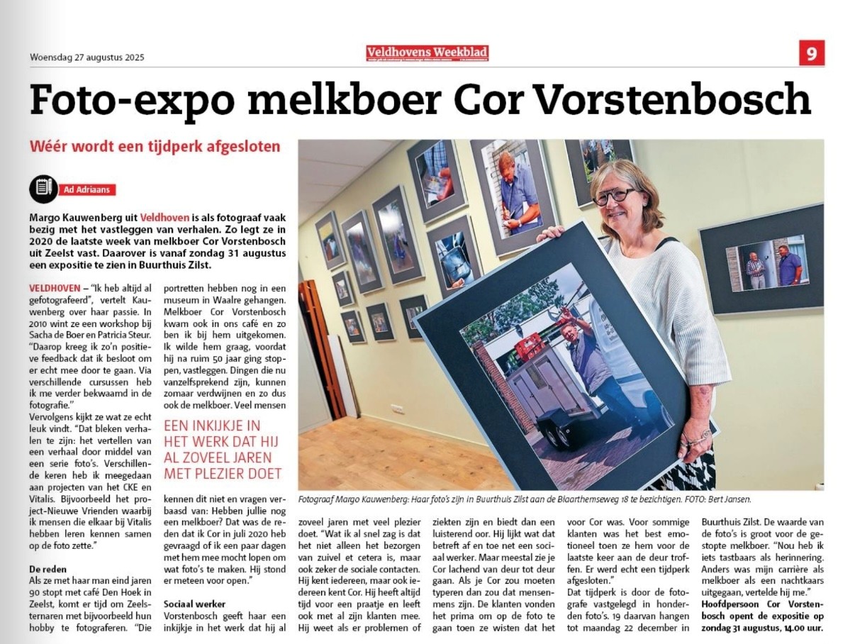 Al zolang ik me kan herinneren komt er een melkboer langs de deur. Na meer dan 50 jaar had hij besloten te gaan stoppen. Ik vroeg aan Cor of ik met hem mee mocht langs de deur omdat ik vermoedde dat dit wel een van de laatste melkboeren in Nederland zou zijn. Een beroep wat uitsterft en straks niet meer te zien is in het straatbeeld. Wat me opviel was zijn grote betrokkenheid bij de mensen. Hij kon iedereen en maakte ook regelmatig een praatje. Hij was op de hoogte van het wel en wee in de wijk en nam ook de tijd om hierover met de mensen te praten. Pas bevallen moeders kregen een pakje slagroom en zo was hij op vele wijzes attent. Hij was niet alleen melkboer maar eigenlijk ook een sociaal werker.